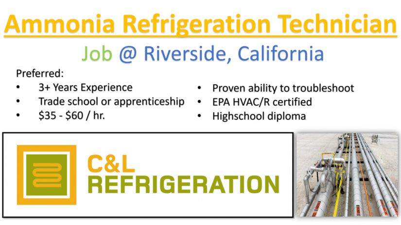 Industrial Refrigeration (NH3) Technician Job at Riverside, California