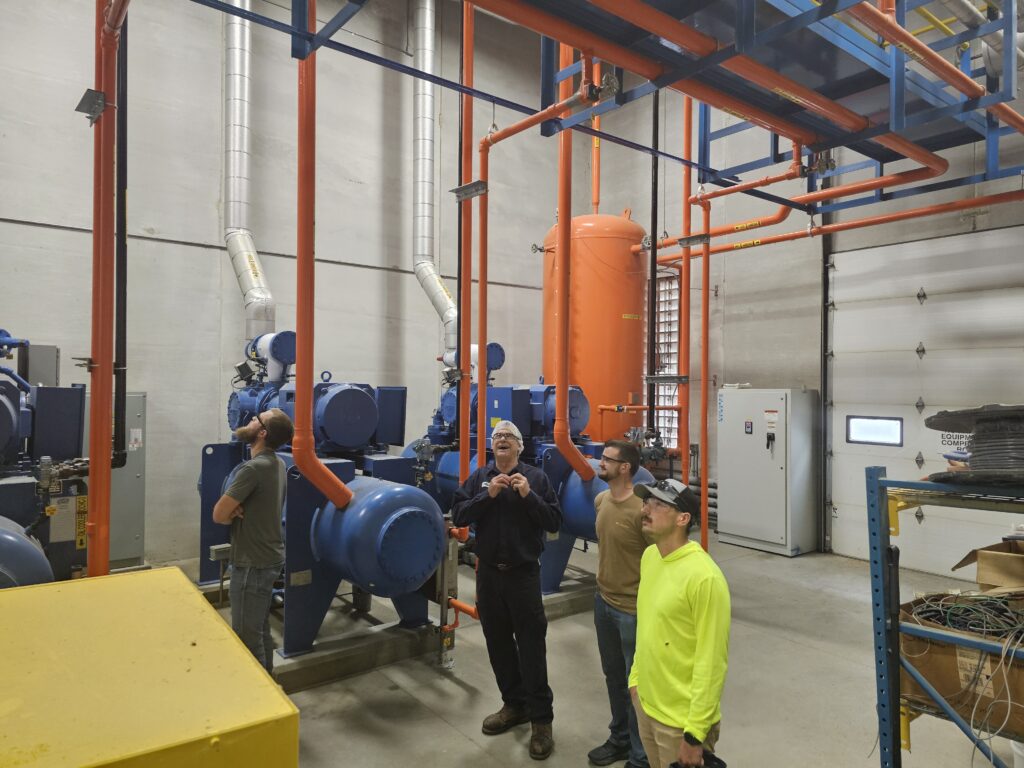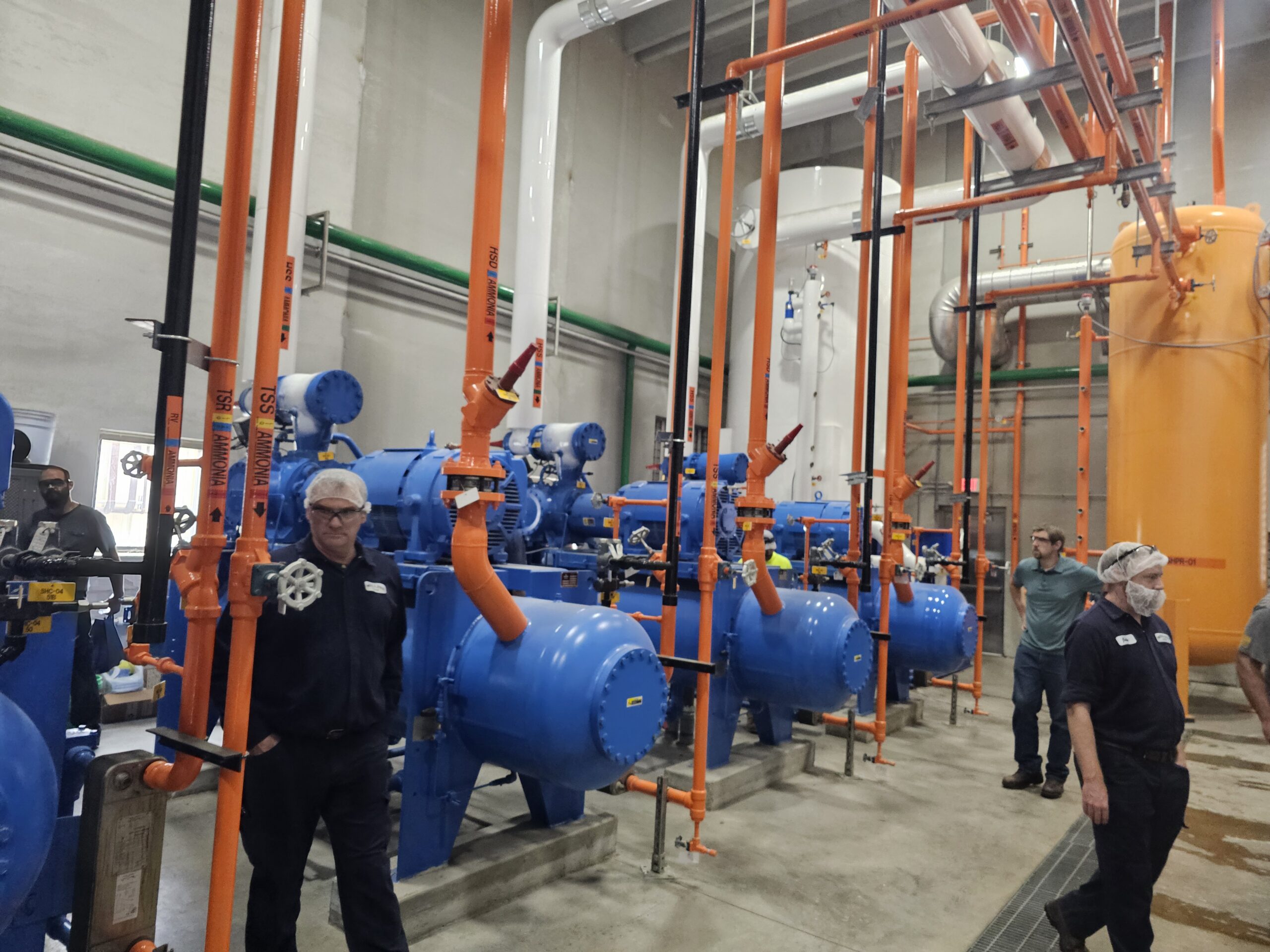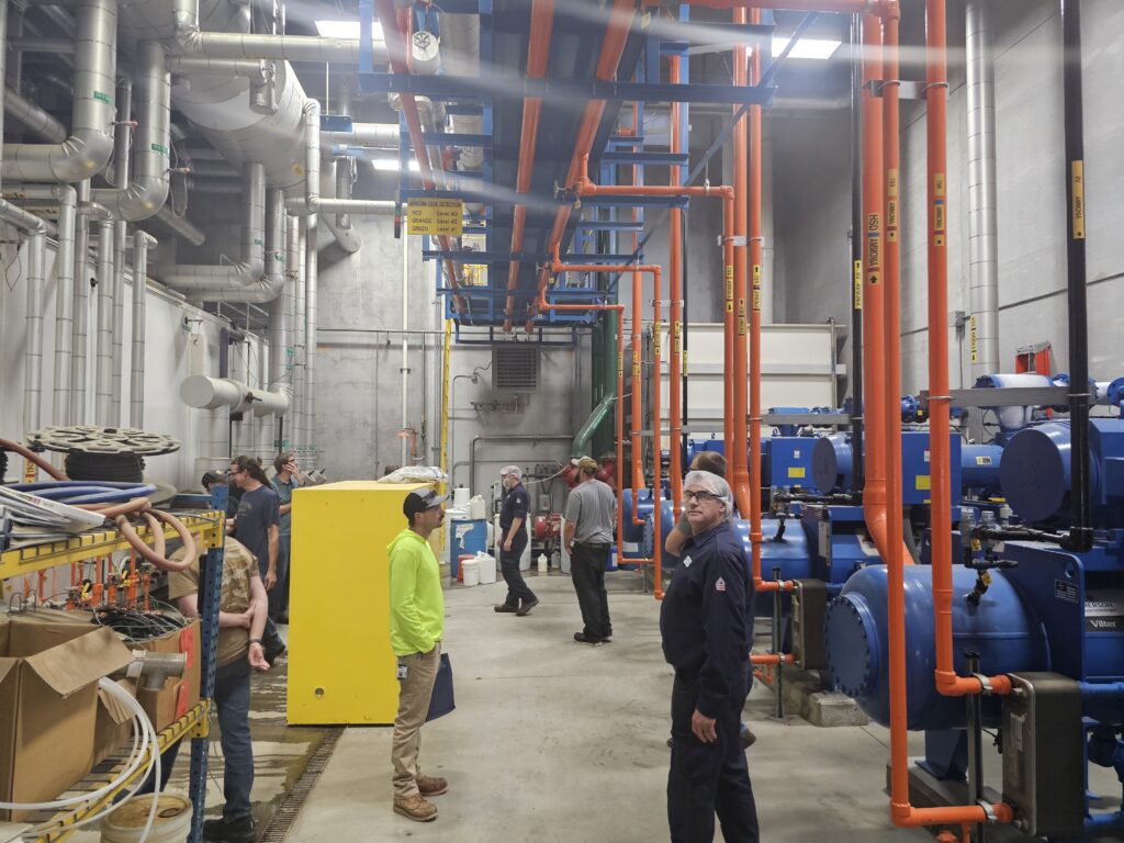 Introduction to Nh3 Refrigeration – Another day in the engine room—boots on concrete, eyes on the steel. Nothing beats standing under live R-717 piping, tracing the flow, hearing the machines work, and actually putting hands on the system. This is where it clicks: valves, compressors, safety devices, and why every decision matters. Classroom talk is fine, but real understanding comes from being in the room, asking questions, and learning how to work safely and confidently around ammonia. Thank you Mullins Cheese for investing in your team – we pray it pays dividends!